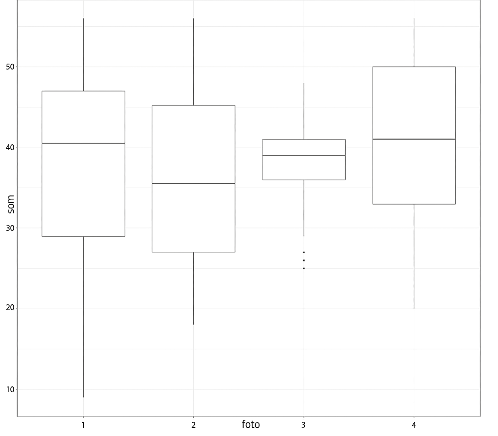 Tot slot is er ook de beperking dat de foto’s telkens in dezelfde volgorde werden aangeboden, en er dus niet werd gecorrigeerd voor het volgorde-effect middels randomisatie hiervan.